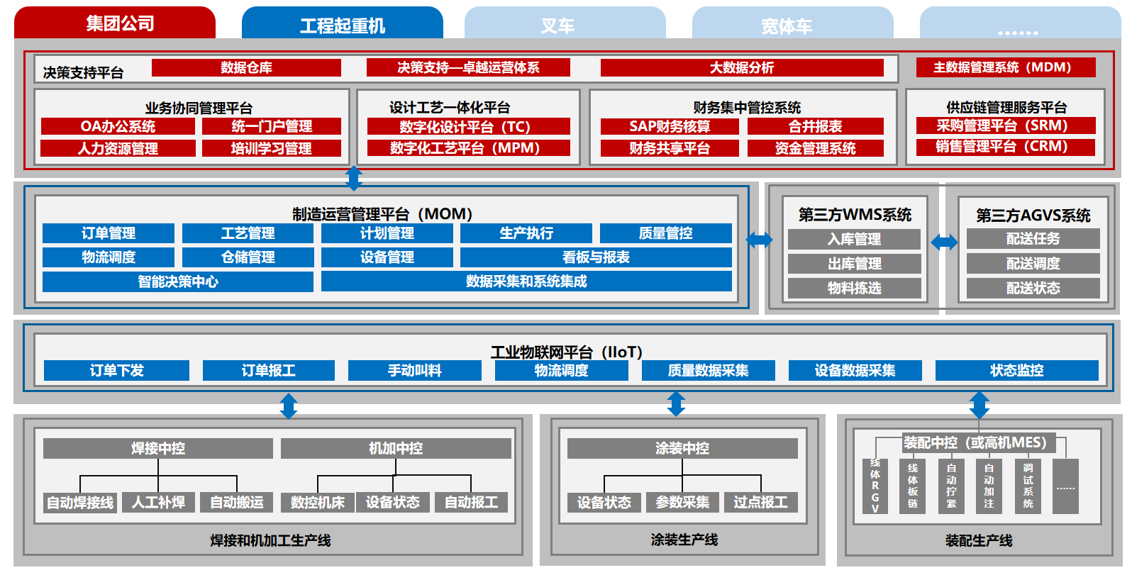 山西省属某大型重工装备制造企始建于1950年,被誉为“共和国长子”,是新中国自行设计建造的第一座重型机械制造企业,创造了460多项中国和世界第一,累计为国家重点建设项目提供两千余种、三万余台套装备产品,主营矿山、起重、工程机械、风力发电、轨道交通、海洋工程、锻压等设备,是我国重要的航天发射装置生产基地。为响应国家制造2025规划,太重集团全面推进多系统建设,面临集团化多工厂协同生产、业务数字化与标准化的迫切需求。